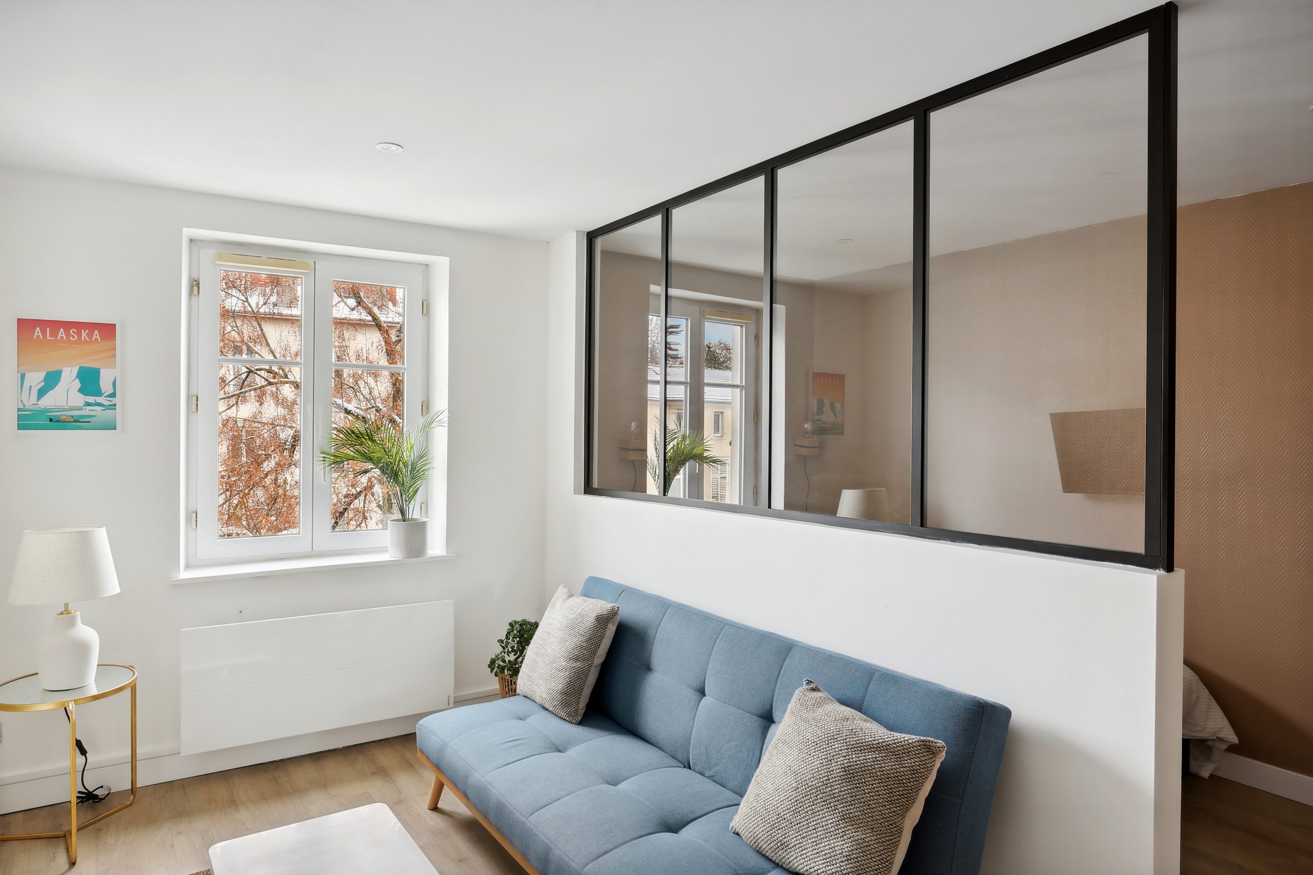 Malgré sa surface, l’appartement permet désormais de proposer de véritables espaces distincts : coin nuit, salon, cuisine et salle de bain, offrant un confort supérieur à celui d’un studio classique.