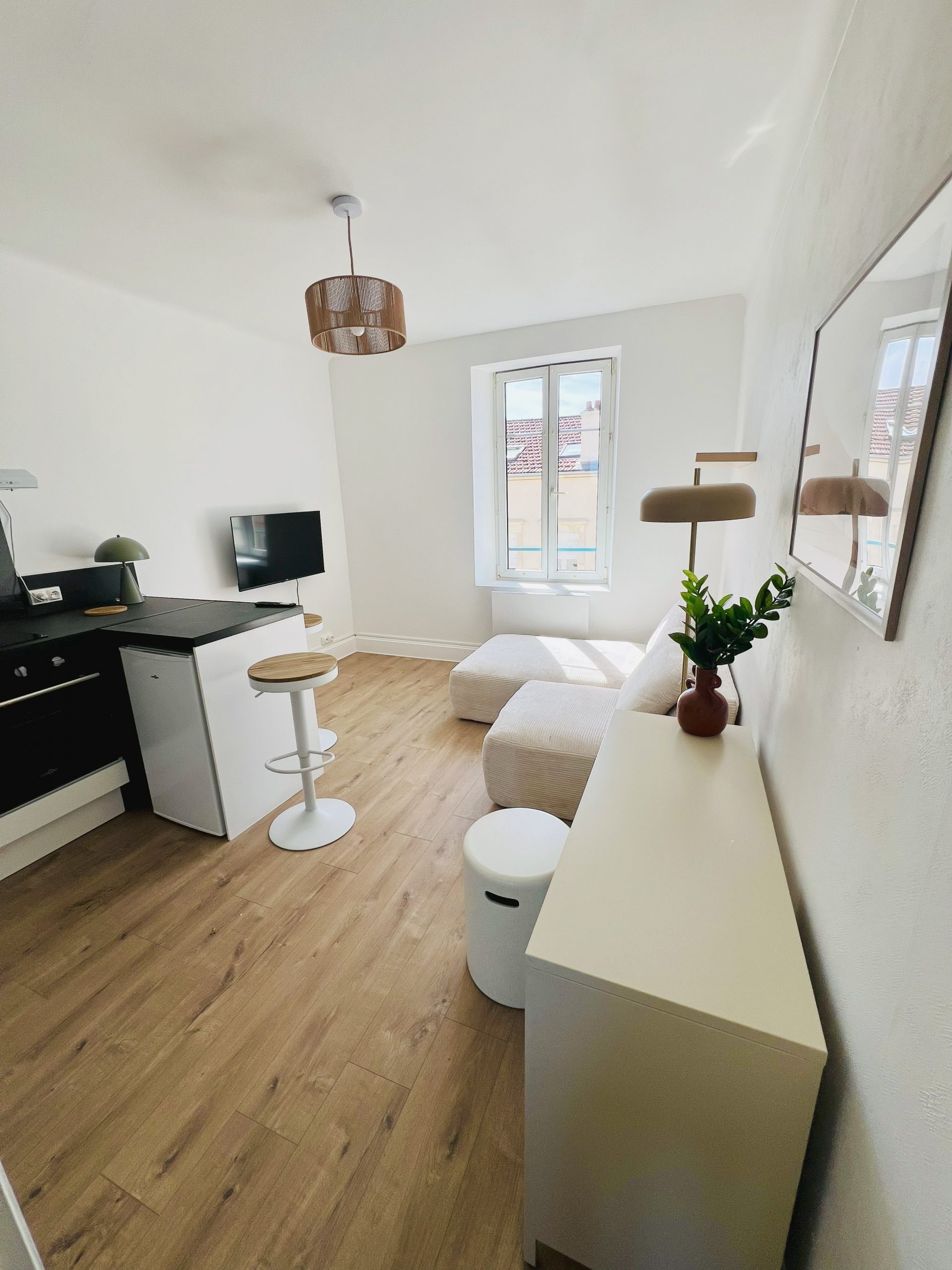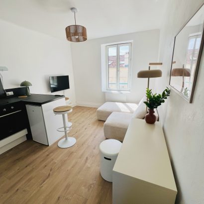 Transformation totale de cet ancien T1 pour en faire un produit délivrant un beau rendement net d’imposition à Nancy.
